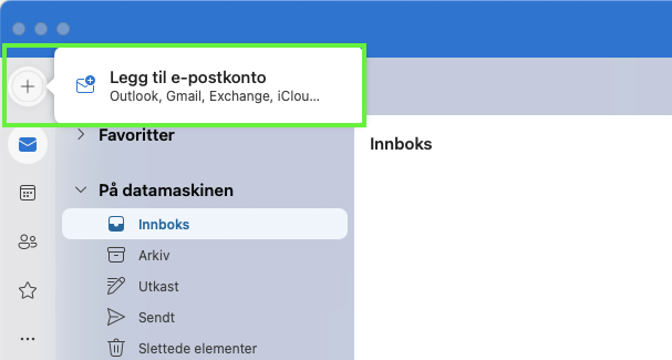 - Klikk på pluss øverst til venstre og velg "Legg til e-postkonto".