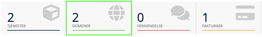 - Når du har logget inn klikker du på knappen for "Domener" på førstesiden for å komme til listen over dine domenenavn.