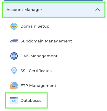 - Velg "Account Manager" og "Databases" fra menyen til venstre i DirectAdmin.